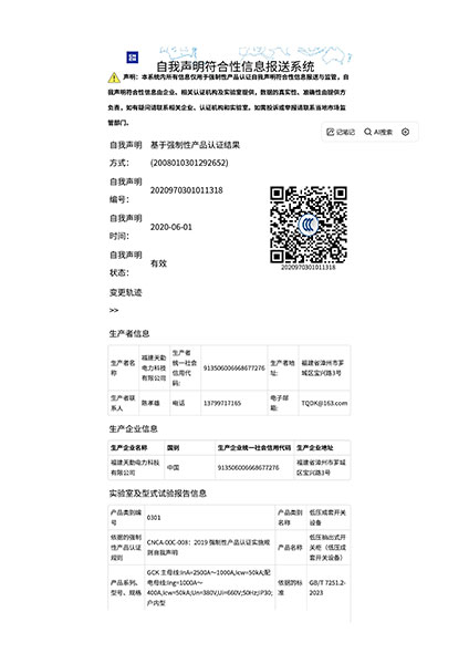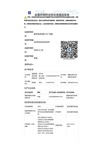 低压成套开关设备GCS-1600A~4000A-CCC认证